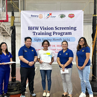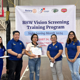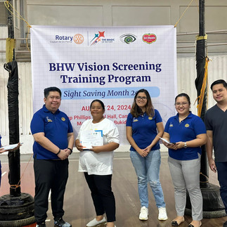 Manolo Fortich, August 24, 2024 — In observance of Sight Saving Month, the Rotary Club of Cagayan de Oro Premier, in partnership with the Ophthalmology Department of Northern Mindanao Medical Center and Del Monte Philippines, Inc., successfully conducted a Vision Screening Training for Barangay Health Workers (BHWs). Held on August 24, 2024, the training was aimed at empowering BHWs to perform vision screenings within their communities and to help in the early detection of preventable blindness.